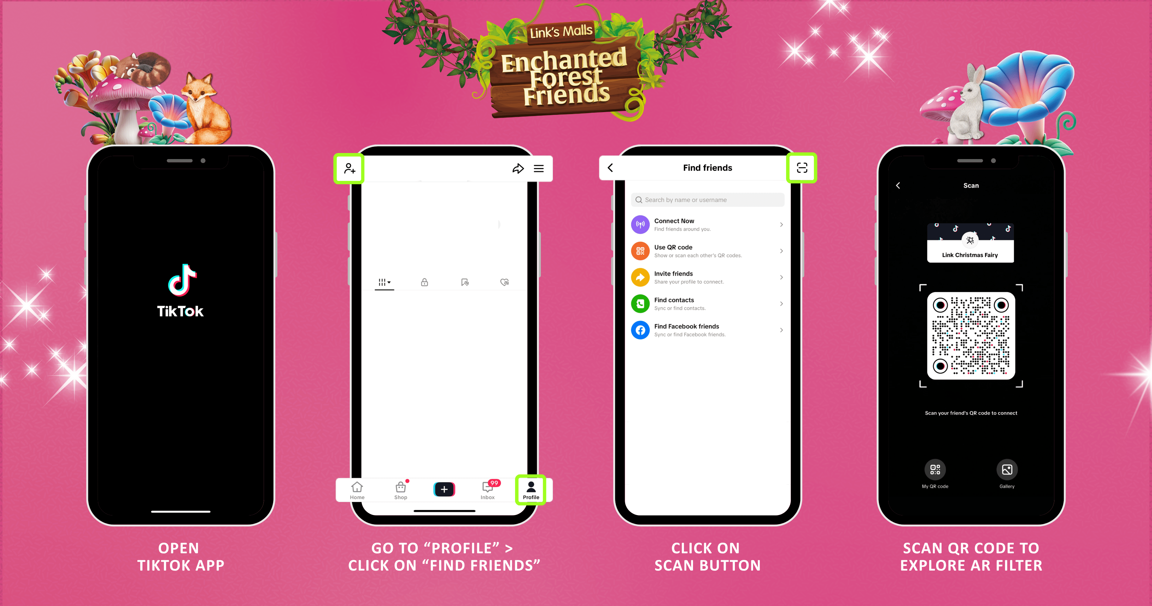 Use hashtag #LinkXmasFairy in your caption. Refer to detailed instructions on guide to open AR Filter below