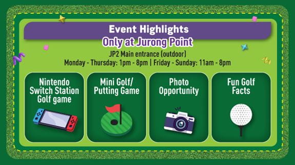 Join our fun-filled mini golf experience & other golf-related games! FREE for all to play, no minimum spending is required. Be among the first 30 participants daily to receive an exclusive Golf ball keychain, while stocks last. T&Cs apply.