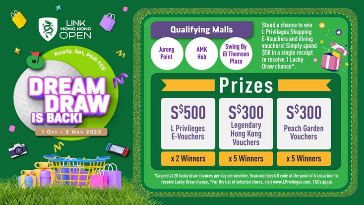 From 1 Oct to 2 Nov 2025 (both days inclusive), simply spend a minimum transaction of $50* in a single receipt to earn 1 x Lucky Draw chance. Max. of 20 chances per member per day.